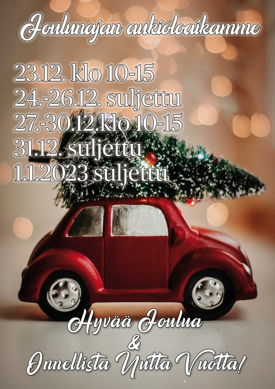 Joulun poikkeusaukioloajat kristiinapassoja22.12.2022 Uncategorized ← Pyhäinpäivän poikkeusaukiolo Haetaan kesätyöntekijöitä! →